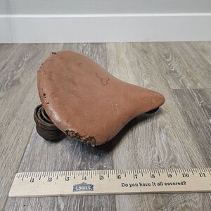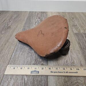 Vintage Prewar Bicycle Dual Spring Saddle Seat Cruiser Bike Tab Browm Leather