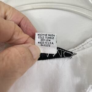 This Vintage Priamo Nightgown is a romantic and bohemian piece perfect for any season. Made of 100% cotton in a solid white color, this gown features long sleeves and a V-neckline with lace and ribbon accents. The lightweight woven fabric and pullover closure make it comfortable for any occasion, whether it's a holiday, wedding, or simply a relaxing night's sleep. This Victorian-inspired gown with a prairie cottagecore style exudes a nostalgic charm that is both whimsical and timeless, ideal for women looking for a unique and charming addition to their sleepwear collection.