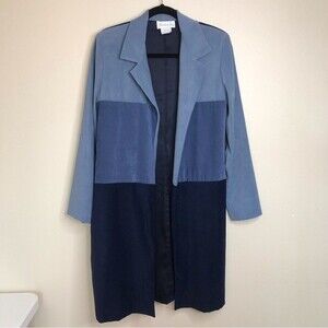 Vintage Pride and Joy Patchwork Faux Suede Duster Blue Jacket Women Size 10