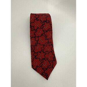 Elevate your sartorial collection with the Vintage Prima Italy Red Silk Tie, featuring a bold geometric pattern that's sure to make a statement. Crafted from luxurious woven silk, this designer necktie is a testament to timeless style and quality craftsmanship. Its classic length of 57 to 60 inches and a width of 3.25X58 inches make it a versatile choice for a variety of knot styles and fits. With its vibrant red hue accented by a subtle logo, this tie is a perfect for both business and formal occasions. Proudly made in the United States, this hand-sewn tie is an adjustable piece that caters to a one-size-fits-all approach. The PRIMA ITALY brand ensures a unique addition to your attire, reflecting a blend of Italian design and American artisanship.