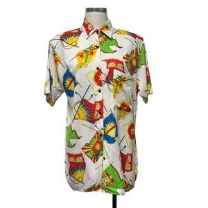 Vintage Prime Time Womens Size L Nautical Flags Button Up Shirt