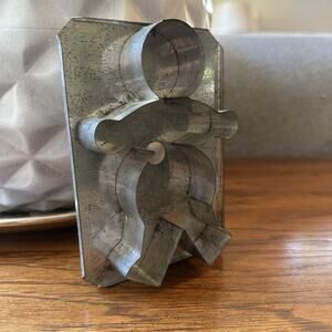 Vintage Primitive GINGERBREAD MAN 5" Cookie Cutter Tin Flat Back Handle Canada