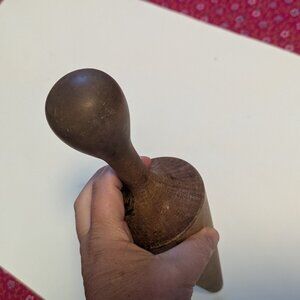 Rustic vintage wooden muddler, solid wood. Measuring approximately 11 inches long, rounded handle and a conical end .