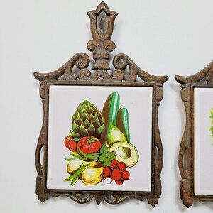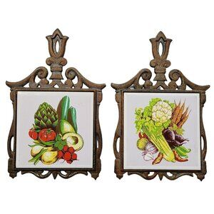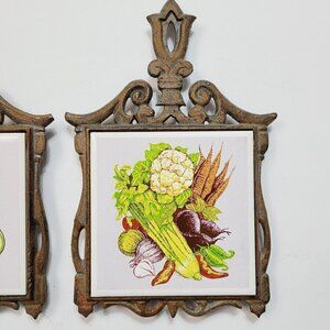 Vintage Prince Cast Iron Ceramic Trivets Vegetables Kitchen Wall Home Decor