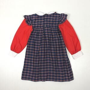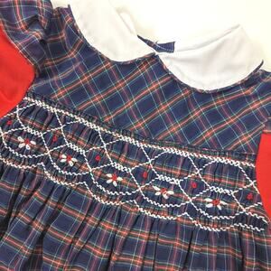 Vintage Princess Anne sweet navy and red smocked plaid dress. Size is tagged as 6, but looks to fit like 4T. Please check the measurements provided.
