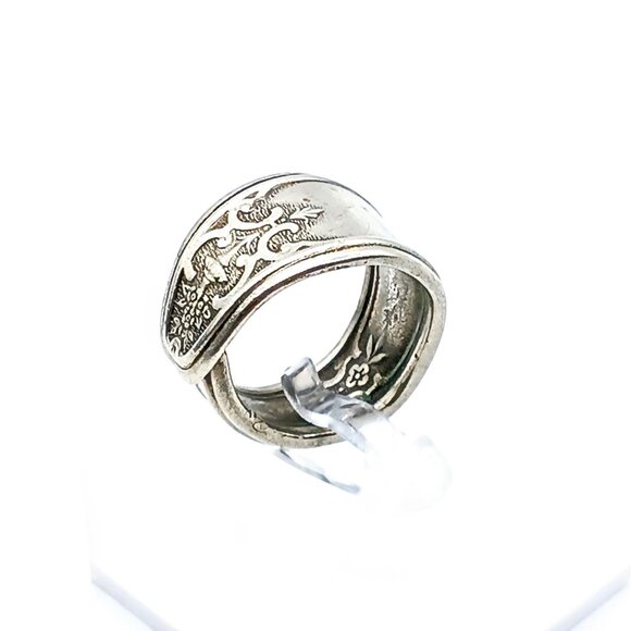 Vintage Princess Spoon Wrap Ring, Silver Plate Lady Doris Floral Bypass Ring, Un