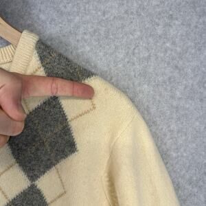 Vintage Pringle Scotland Argyle Sweater 100% Lambswool Men's Medium Cream
