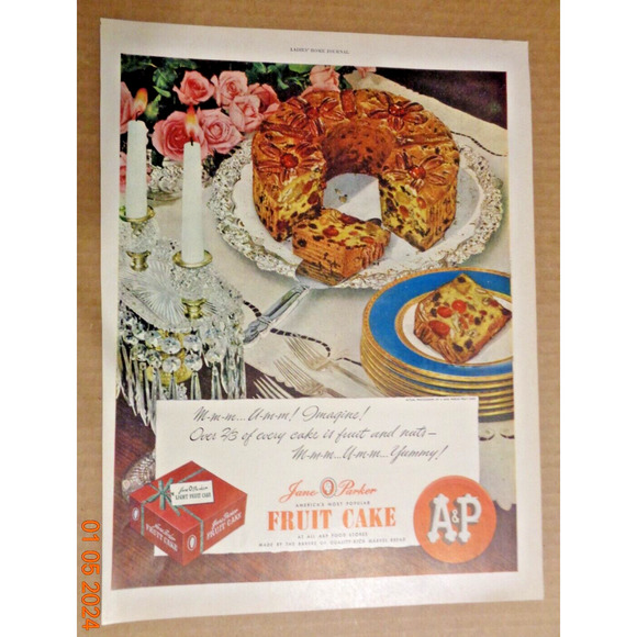 Vintage Print Ad - 1948 for Jane Parker Fruit Cakes - A & P Food Stores