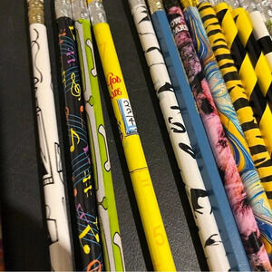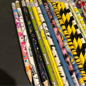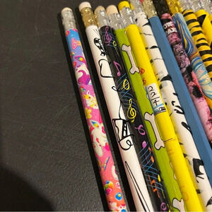 Vintage Printed Pencils Lot Of 24 Wooden Pencil Lisa Frank Animals Flag Smiley Some have been used