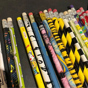 Vintage Printed Pencils Lot Of 24 Wooden Pencil Lisa Frank Animals Flag Smiley