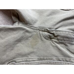 These Vintage Private Club Khaki Dungarees have a classic unisex style with a regular fit and a size 28/27 inseam. The beige color adds a timeless touch to these pants, perfect for those who appreciate vintage fashion. there is a stain, its visible in the photos. The khaki design and waist size of 28 inches make them versatile for everyday wear or more formal occasions. Item 413
