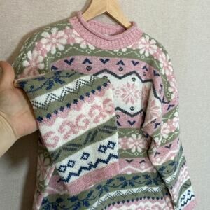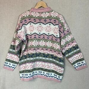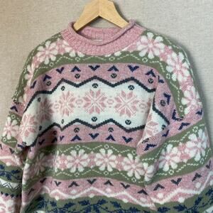 Vintage Private Eyes Womens Fair Isle Knit Sweater Size XL Mock Neck Ski Cabin