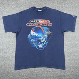 Vintage Pro Player Denver Broncos T-Shirt Men's XL Blue NFL Helmet Football 90s