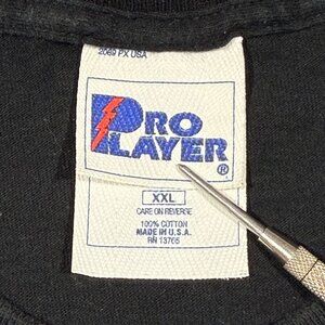 This vintage Pro Player t-shirt sports a bold Penguins NHL Eastern Conference design. The black and yellow color scheme makes a statement, reflecting team pride with a comfortable fit. Ideal for fans or collectors, this classic design brings a sense of nostalgia and authenticity.