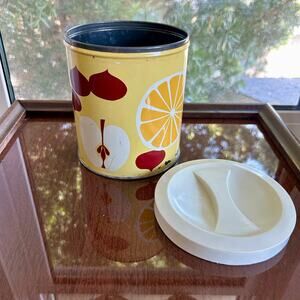 Vintage Procter & Gamble Atomic Fruit Print Canister Tin with Lid, 60s/70s