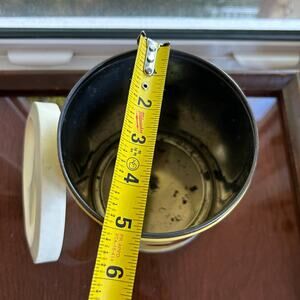 Good vintage condition with age-appropriate wear, including light surface scratches and minor paint rubs and tarnish spots. Lid rotates properly. Clean and structurally sound.