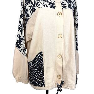Vintage Produce Company Beige Multi Pattern Print Button Front Jacket Size PL