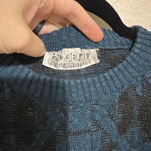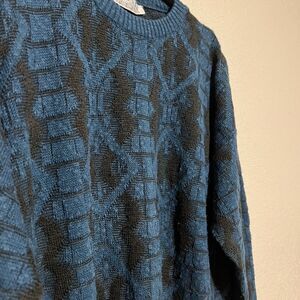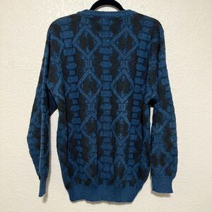 Vintage Progetto Mens Sweater Made In Italy Blue Black 80s 90s Size L (MEASURED)