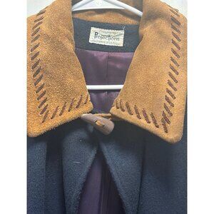 Vintage Projections Navy Wool Duffle Coat With Camel Collar & Toggle Closures
