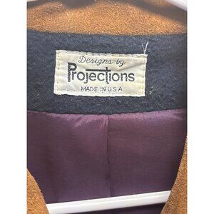 This vintage duffle coat from Projections offers a timeless appeal with its elegant toggle closures and distinctive camel collar. The navy wool material provides warmth and durability.