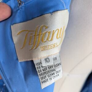 Vintage Y2K Beaded One Shoulder Prom Dress Maxi Ball Gown by Tiffany Designs - Size 10 - Blue with Silver. Measurements and condition details below — click ‘More’ if hidden.