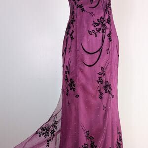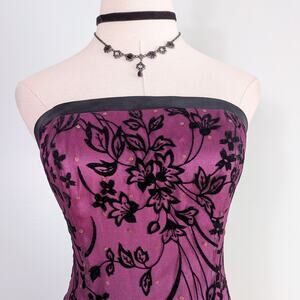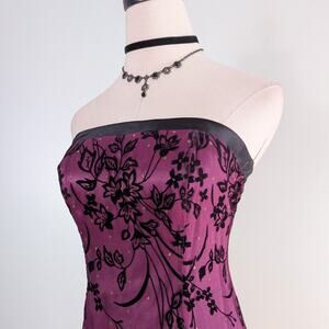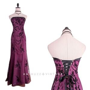 Vintage Prom Dress Maxi Gown 4 Purple Black 90S Y2K Gothic Corset Floral Mesh