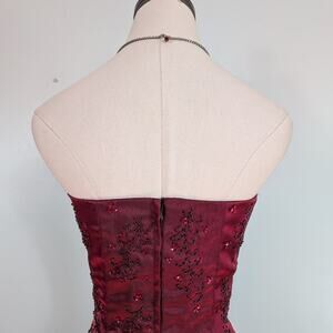 Vintage Prom Dress Maxi Gown 6 Red Y2K Goth Princess Floral Bead Strapless Glam
