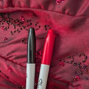 Vintage Y2K Strapless Prom Dress Maxi Ball Gown by Precious Formals - Size 6 - Red / Maroon Metallic with Black Undertones. Measurements and condition details below — click ‘More’ if hidden.