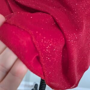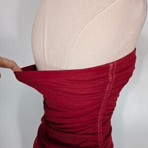 Vintage 90s Y2K Strapless Midi Maxi Mesh Ruffle Cocktail Dress by Ruby Rox - Size Medium - Red w/ Glitter