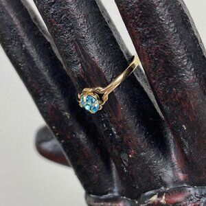 Vintage Prong Set Blue Glass Rhinestone Gold Tone Ring Size 5.5