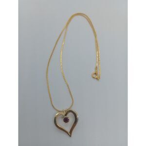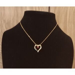 Vintage Prong Set Red Rhinestone Gold Tone Heart 16" Pendant Necklace
