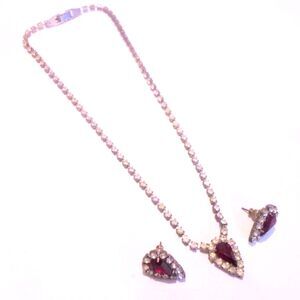 Vintage Prong Set Red and Clear Rhinestone Necklace and Earring Demi Parure