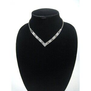Vintage Prong Set Rhinestone V Shaped Necklace Silvertone Multi Strand 15 inch