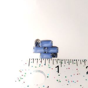 Vintage silver tone prong set blue satin rhinestone screw back earrings