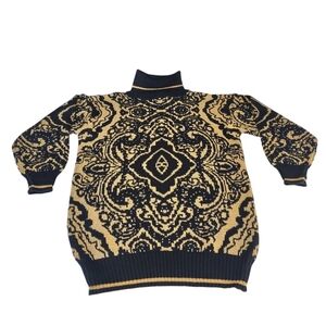 Vintage Pronto Moda Black Gold Turtle Neck Sweater Size S