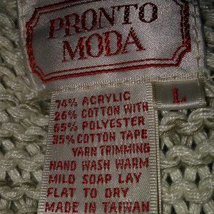 Vintage Pronto Moda Sleeveless Sweater Boho Style Women's L 74% Acrylic, 26% Cotton. Color is like 2nd photo. Very nice condition.
