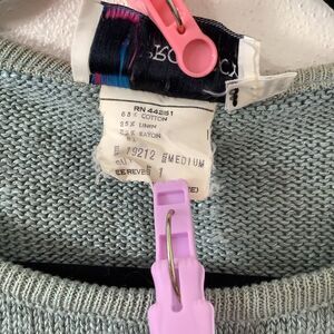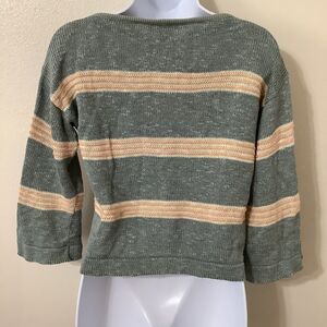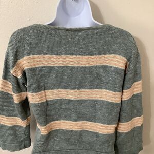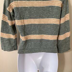 Vintage Prophecy Cottagecore Grandpacore Linen Blend Sage Striped Knit Sweater M