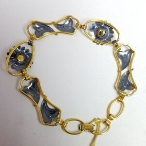 Vintage Providence Stock Co Gold Filled Sterling Silver Blue Flower Bracelet, Art Nouveau Style Links, Original Hang Price Tag.