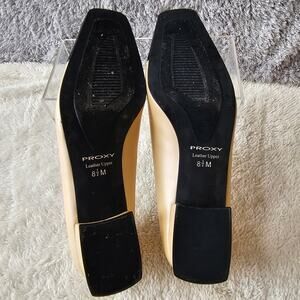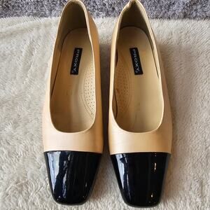Vintage Proxy Women's Cap Toe Leather Ballet Slip On Flats Size 8.5M Beige Black