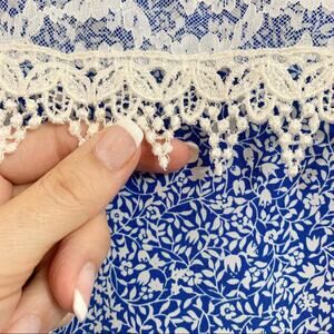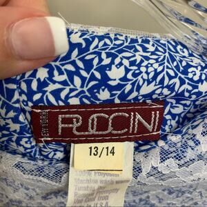 Vintage Puccini Lace Collar Floral Royal Blue/White Midi Dress