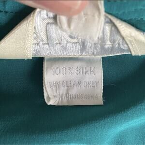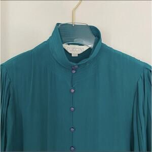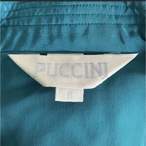 Vintage Puccini Silk Long Sleeve Midi Dress Size 8 Teal Green Fitted Cuff Modest