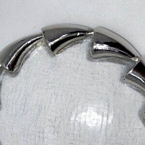 Minor wear on the silver-tone finish, adding character to its vintage appeal. Diameter approximately 2 inches.