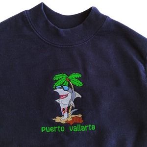 Vintage Puerto Vallarta Small Kids Sweatshirt Cool Shark Crewneck Navy Blue NEW