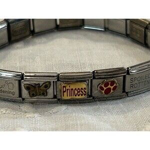 Vintage Pugster Stainless Steel Italian Multi-Charm Link Bracelet