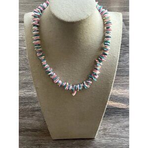 vintage Puka Shell Chipped necklace White Pink Light Blue Beach Summer. Condition is Pre-owned. Shipped with USPS Ground Advantage.