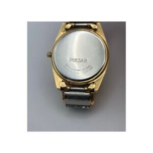 This vintage Pulsar men's analog watch is a stylish timepiece with day and date features. It includes both English and Spanish day indicators. A new battery has been installed, so it's ready to wear!