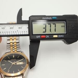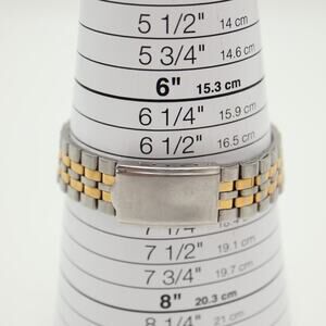 Pre-owned but in great condition! The band is in good condition with light wear. PLEASE see picture #4 for the measurement to confirm it is a good size for you. The crystal is also in good condition but with moderate to light scratches, nothing too deep, please see all pictures for details on any scratches if there are any. The watch is currently running smooth and keeping accurate time. Battery was replaced (6/26/25), and we will check the watch before shipping to ensure it is working!