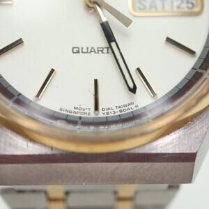 Pre-owned but in good condition! The main flaws to note is that the crown has partly broken off, but can be pulled out with good fingernails/tweezers to set. The crystal also has some moderate scratching (see pictures). The band is in good condition with light wear. PLEASE see picture #4 for the measurement to confirm it is a good size for you. The crystal is also in good condition, please see all pictures for details on any scratches if there are any. The watch is currently running smooth and keeping accurate time. Battery was replaced (4/17/25), and we will check the watch before shipping to ensure it is working!