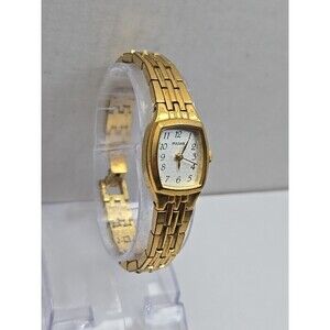 Vintage Pulsar Womens Gold Tone Quartz Watch V811X051 New Battery Dress Bracelet