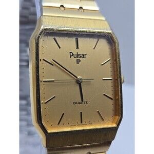 Vintage Pulsar by Seiko V321-5009 Gold Tone Tank Quartz Mens Watch New Battery